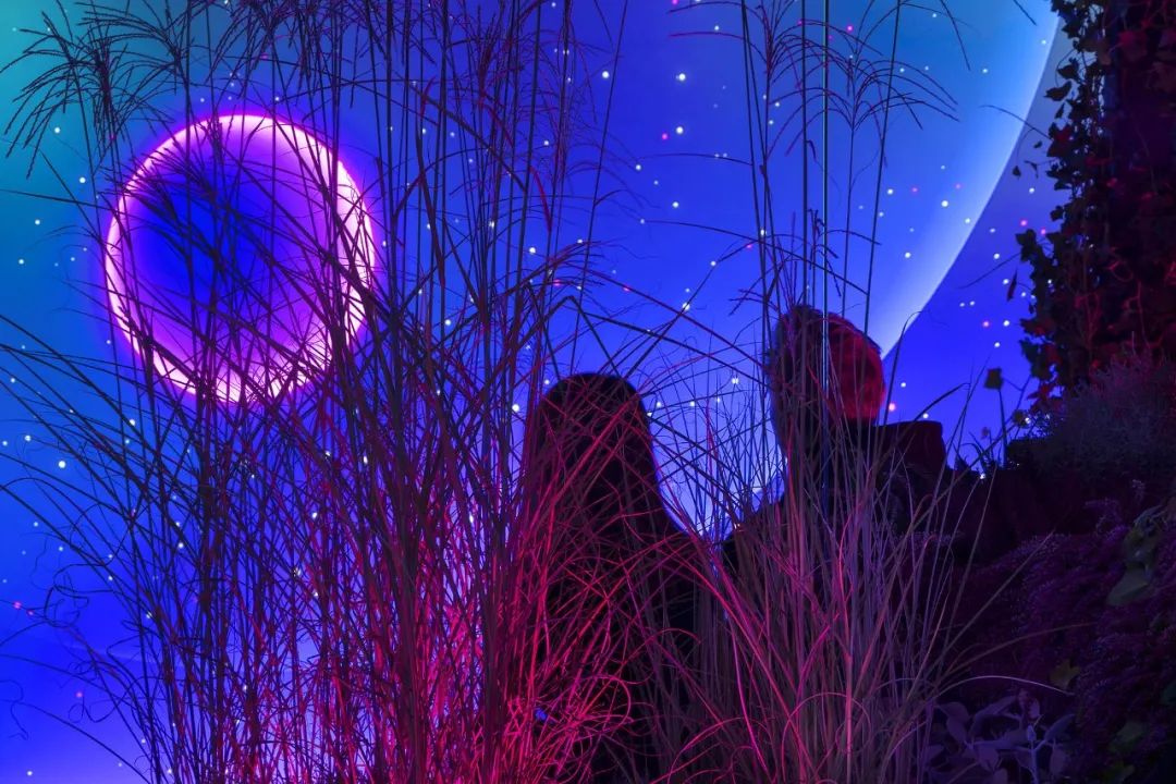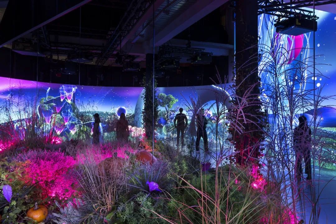参观者在300°环绕、12英尺高的巨大数字幕布下,探索艺术、科学和自然的交汇处,共同开发充满想象力的“乌托邦花园”。