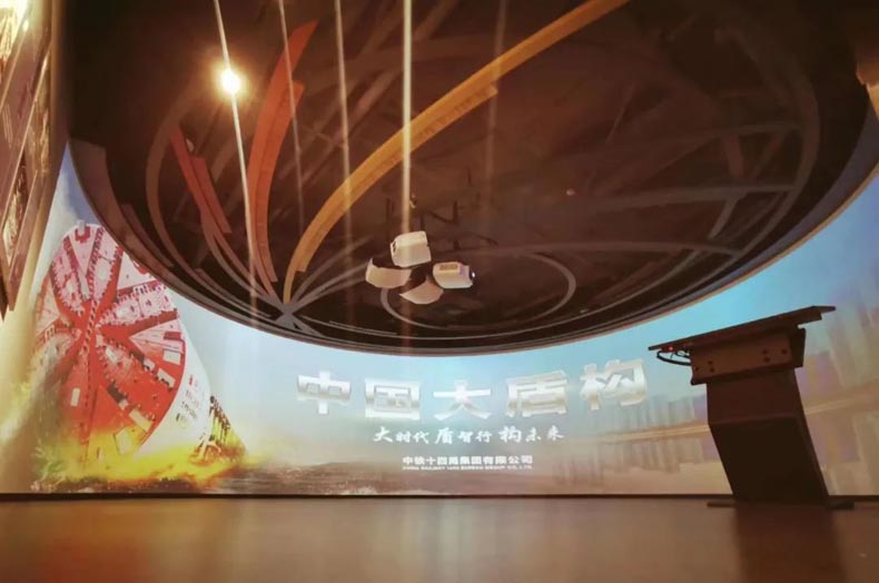 270°的先进环球荧幕厅,既可以播放影像资料又是施工信息展示平台,在这里我们可以同步观看十四局在全国各地的工程施工信息。