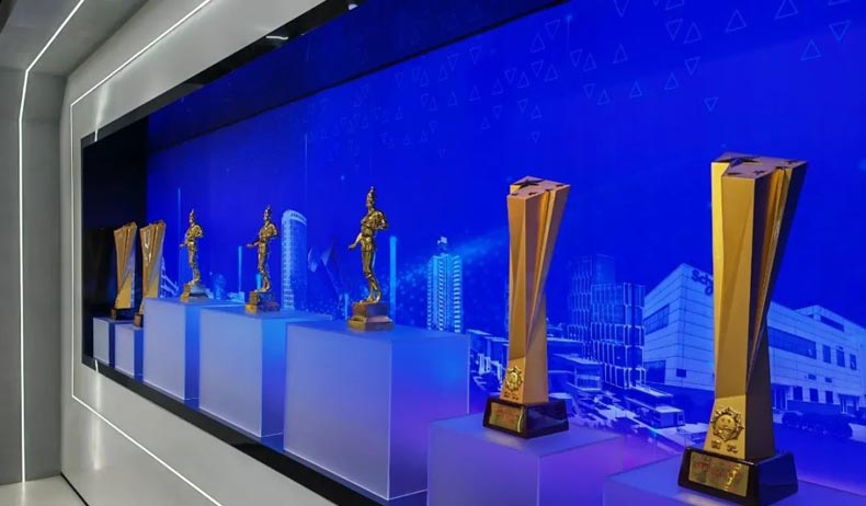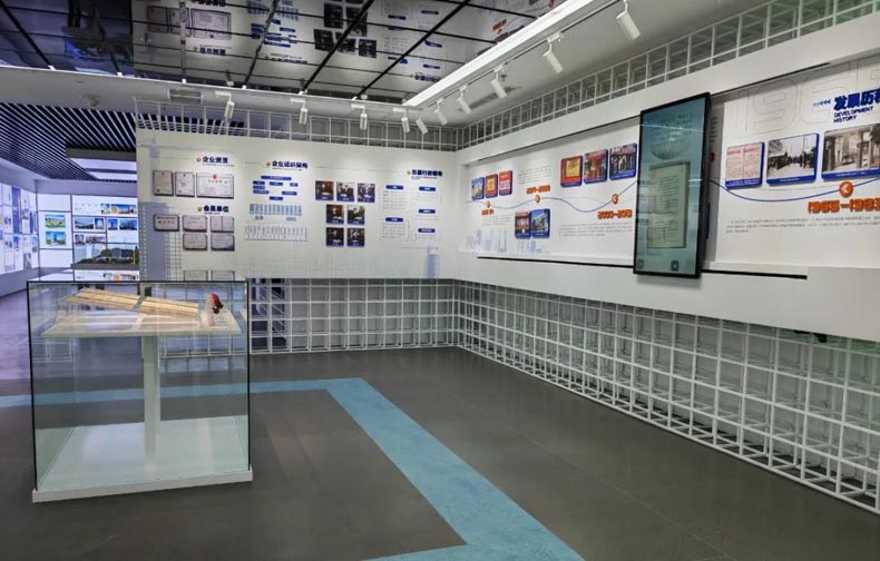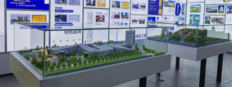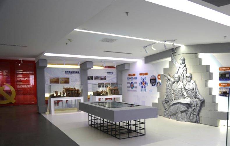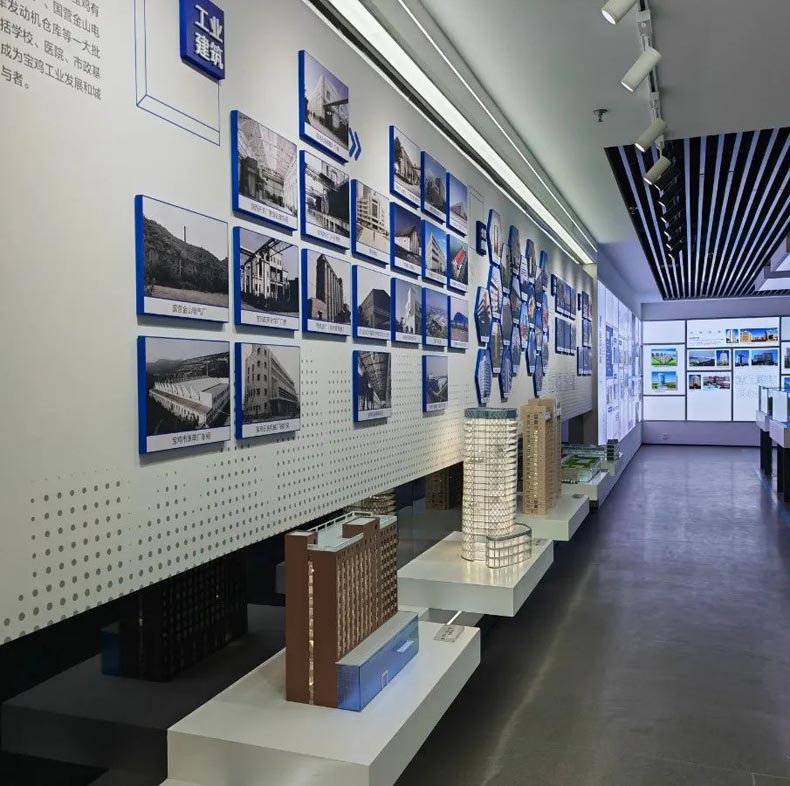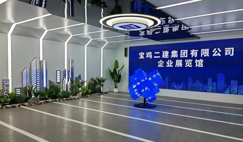 宝鸡二建企业展览馆总面积516㎡,共分为四个展示单元,分别是:第一单元平地起高楼,主要展示集团公司历史沿革;第二单元风雨筑辉煌,主要展示集团公司壮阔征程;第三单元党建强引领,主要展示党建、企业文化;第四单元公司荣誉展示;通过实物、展板、沙盘、模型、视屏、雕塑等表现手法,以图、文、影、声并茂的形式全方位呈现集团公司走过的艰辛之路、创新之路、豪迈之路。