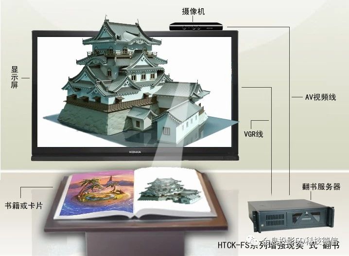 AR立体翻书系统摄像机应作为互动识别的基础,只是融入了增强现实智能识别技术从而在翻书形式上更加逼真,实时地将真实的世界和虚拟的世界结合在一起,为人们带来与数字化信息的真正交互体验。