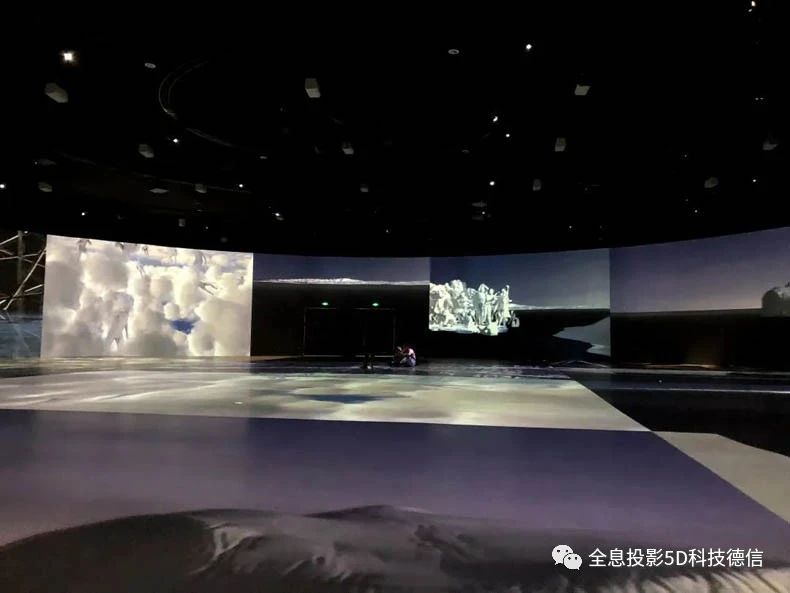 展馆采用了数十台激光投影机,分别对环幕和地面进行投影。在深化设计的过程中,技术论证每一台投影机的安装点位合理性,保证每一处画面的精美呈现效果,以及整幅画面的融合效果。