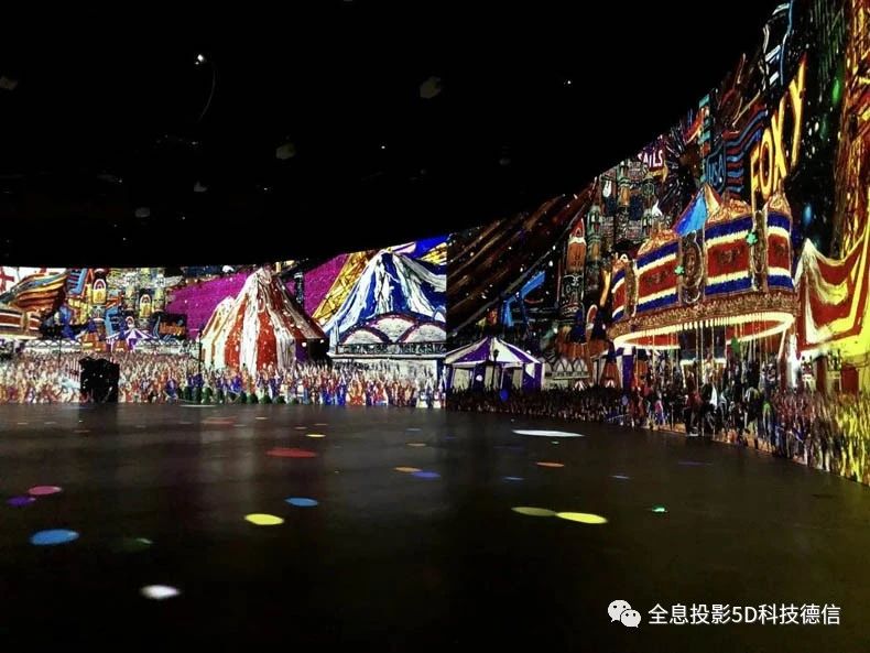 在音乐和技术的作用下,画作中的每一个角色每一个场景都有了新的演绎,诠释出新的故事和氛围,观众在这巨大的投影空间中成功沉浸到了作品当中,成为作品的一部分,也成为了故事的一部分。人们在其中体会艺术世界的神奇和精彩,感受艺术大家对于人类的思考,和对人类社会某种荒诞的追问。
