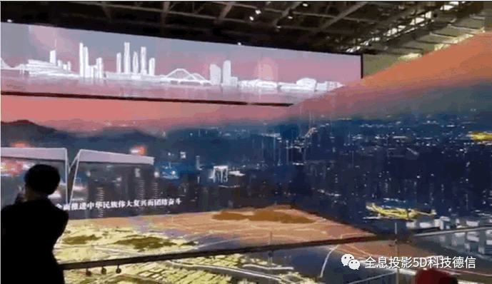 在三楼的“未来智城 世界南沙”智慧沙盘专区,将原本单块大屏升级为250㎡的三折高清屏,三面环绕的震撼显示效果与创意沙盘模型相连接融合,同时设计结合声音、视觉等元素,创造出多元化虚实结合终端应用,将广州南沙的风貌逼真地呈现在观众面前。