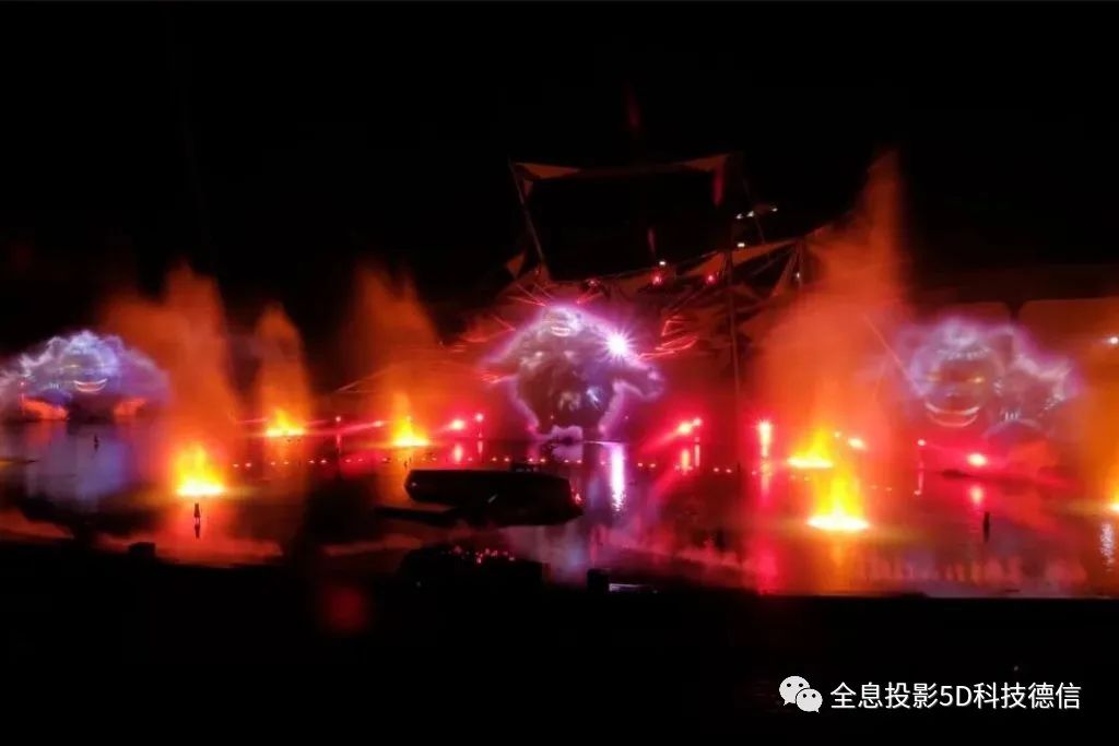 在夜幕降临之时,一匹银白色的骏马飞跃而来,优雅而矫健,仿佛带着满天星辰的耀眼光芒。配备了无人机和遥控系统。在水雾、灯光和火焰中,这些虚拟的高头大马,尽情地散发着它们的优雅与活力。