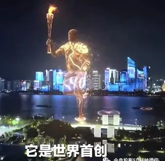 在主火炬点燃前,全球超过 1 亿位“数字火炬手”组成了一个巨大数字人。数字人身上的每一个亮点,代表了一位线上参与的用户。这个巨大的数字人穿越钱塘江江面,一路奔向主会场,跟现场火炬手一同点燃主火炬。