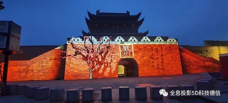 现代光影技术演绎千年古城风采。数台激光工程投影机为澄清门妆点光影外衣,电光流影、美轮美奂,为古镇游客讲述着半朵梅花、龙山书院的历史印迹和文化图腾。古今交错,一眼千年,尽显古城魅力。