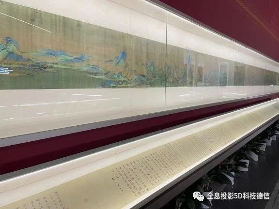 在一、二层的展馆,“故宫石渠宝笈绘画数字科技展”在《清明上河图》《千里江山图》等传统名画中融入数字科技,让观众沉浸式感受和体验传世名画的意境,在画中和古人进行跨越时空的交流。