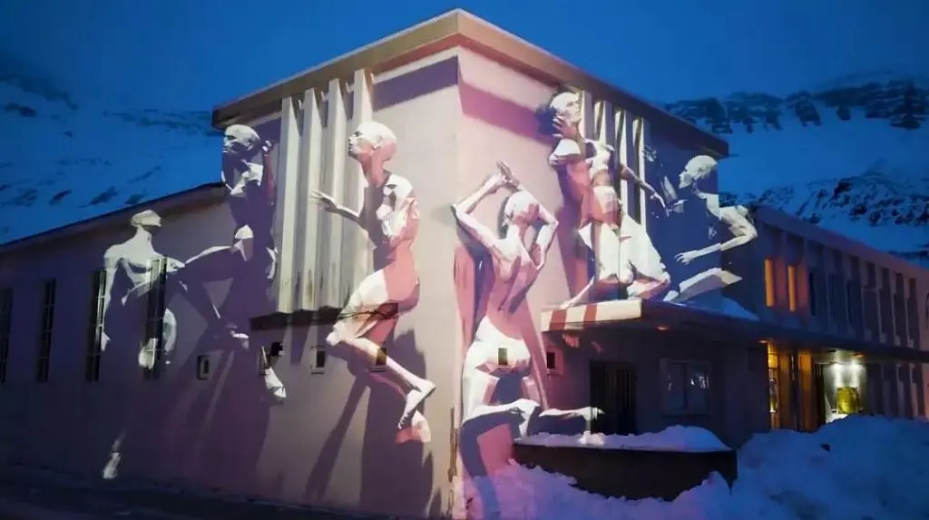 将古典雕塑和现代舞蹈相结合,随着音乐改变呈现不同形态,他们膨胀、变形、移动直至消失在夜色中。