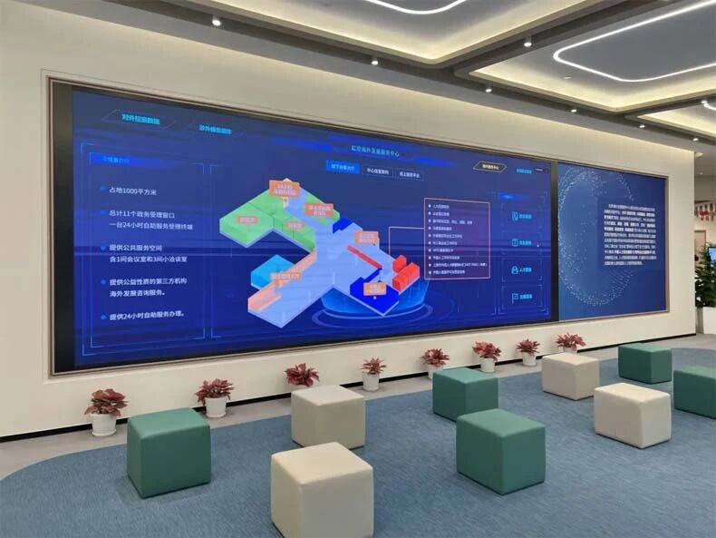 数字化浪潮席卷全球政务的今天,智慧化展示已成为政企形象升级与信息高效触达的核心载体。虹桥国际中央商务区作为长三角一体化发展的战略枢纽,其展厅与大堂的数字化改造不仅是区域形象的“窗口”,更是政务公开、产业聚合与国际交流的“智慧中枢”。以创新显示科技为笔,在此绘制出一幅政企场景数智化的标杆画卷,为行业提供可复制的“智慧展厅”新范式。